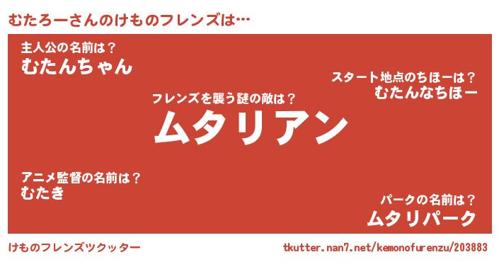 | ヒーロー風カッコイイあだ名 | 『愛の使者むたろー』『スーパームタロー』 |