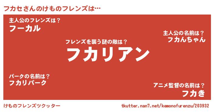 | ヘコむあだ名 | 『フカセ(震え声)』『フカぷりん』 |
