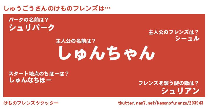 | 2回繰り返すあだ名 | 『しょりしょり』『しゅしゅ』 |