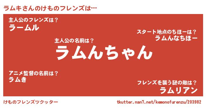 | 男性向けラノベタイトル風あだ名 | 『ラムキの憂鬱』『ラムキスレイヤー』 |