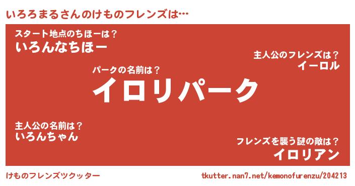 | ヒーロー風カッコイイあだ名 | 『仮面イロダー』『最強戦士イロロマル』 |