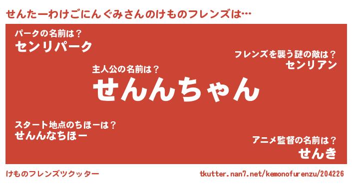 | 2回繰り返すあだ名 | 『せんせん』『ざわざわ』『つんつん』 |