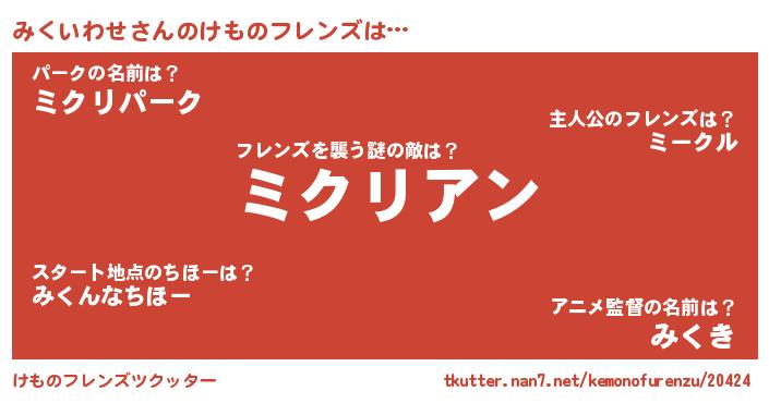 | ヒーロー風カッコイイあだ名 | 『正義の使者みくいわせ』『天弓騎士ミク』 |