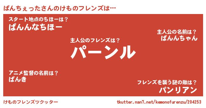 | 男性向けラノベタイトル風あだ名 | 『ぱんちぇったという概念が存在しない退屈な世界 』 |