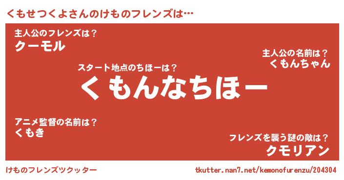 | 欧米人風あだ名 | 『トリンドルくもせつくよ』 |