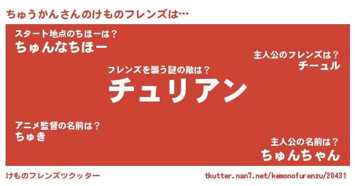 | ヒーロー風カッコイイあだ名 | 『仮面チュダー』『天空の使者ちゅうかん』 |