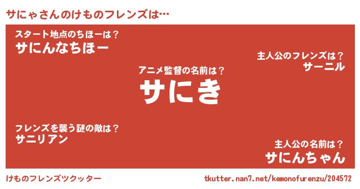 | ヒーロー風カッコイイあだ名 | 『天弓騎士サニ』『ウルトラサにゃマン』 |