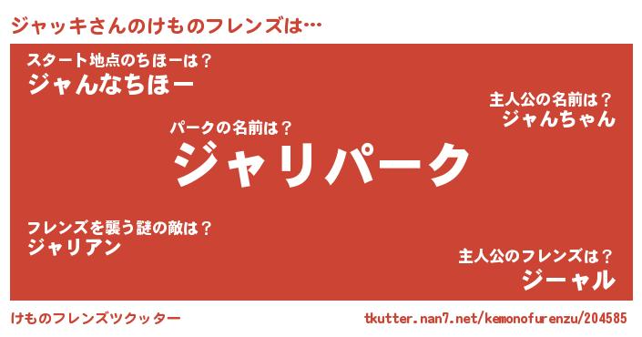 | 男性向けラノベタイトル風あだ名 | 『Re:ジャッキから始める異世界生活』 |
