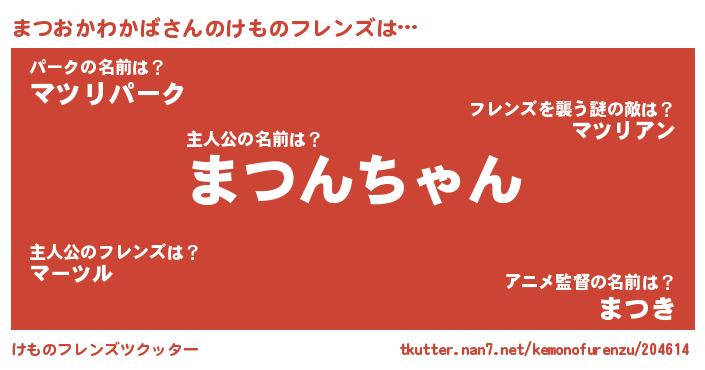 | 意味不明あだ名 | 『住所不定無職まつおかわかば(56歳)』 |