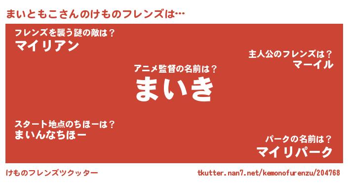 | 意味不明あだ名 | 『とにかく怪しいまいともこ』 |