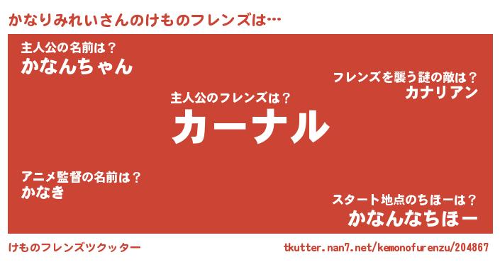 | ファンタジー風あだ名 | 『カナディッシュ』『カナフェル』 |