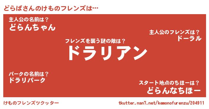 | 意味不明あだ名 | 『ヨモギ科どらぱ属』『ペロリンどらぱ』 |