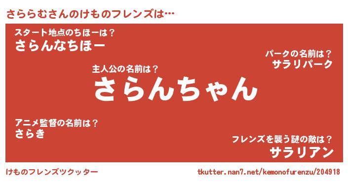 | 意味不明あだ名 | 『ペロリンさららむ』『自称さららむ』 |