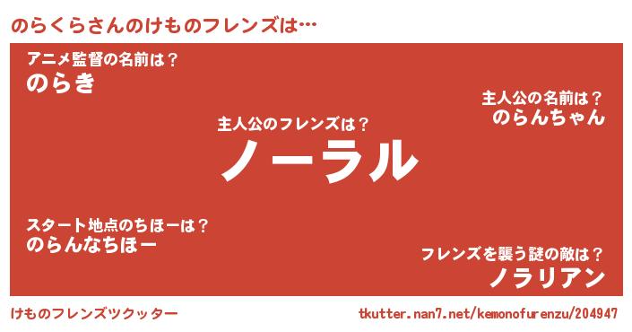 | 男性向けラノベタイトル風あだ名 | 『のらくらに滅ぼされるだけの簡単なお仕事です』 |