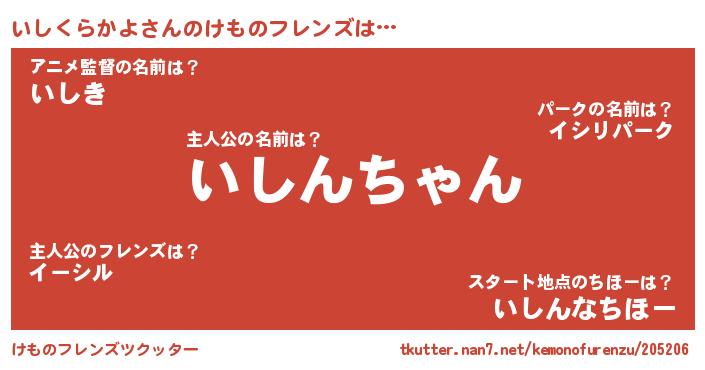 | 意味不明あだ名 | 『住所不定無職いしくらかよ(4歳)』 |