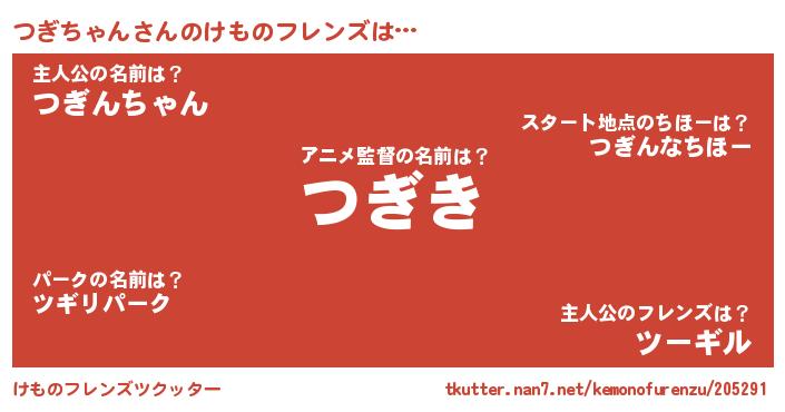 | 肩書あだ名 | 『つぎちゃん船長』『つぎちゃん班長』 |