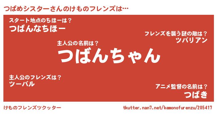 | 2回繰り返すあだ名 | 『つばつば』『とぽとぽ』『つつばば』 |