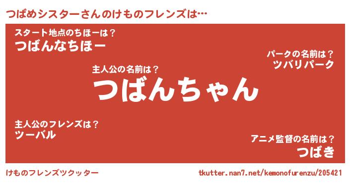 | 2回繰り返すあだ名 | 『つばつば』『んごんご』『つつばば』 |