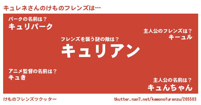 | ヘコむあだ名 | 『キュもー』『キュレネ(笑)』 |