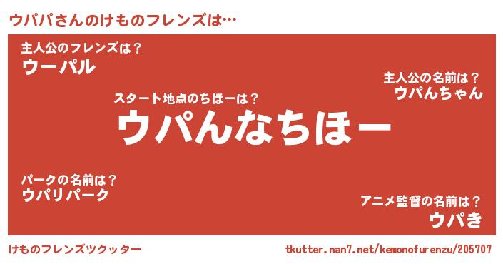 | 男性向けラノベタイトル風あだ名 | 『緋弾のウパパ』『はたらくウパパさま!』 |