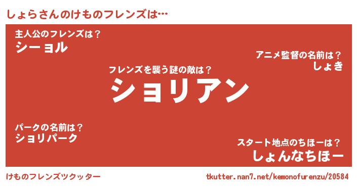 | 意味不明あだ名 | 『住所不定無職しょら(9歳)』 |
