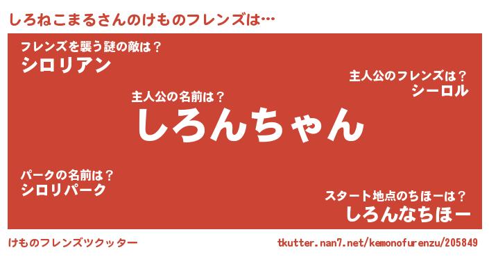 | ポケモン風あだ名 | 『シロチュウ』『シロゴンZ』 |