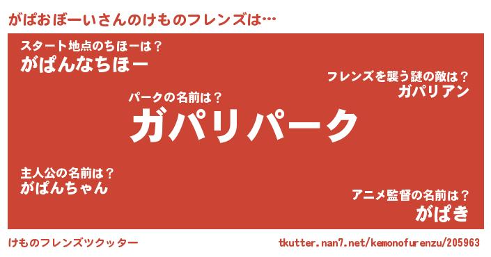 | 肩書あだ名 | 『がぱおぼーい閣下』『がぱおぼーい大尉』 |