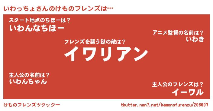| 男性向けラノベタイトル風あだ名 | 『この素晴らしい世界にいわっちょを!』 |