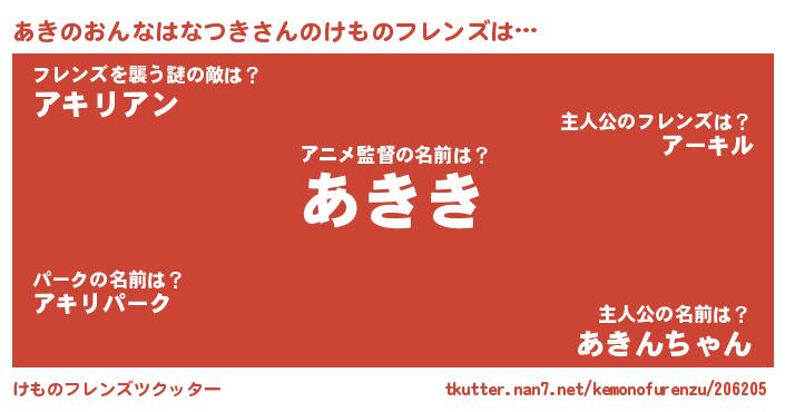 | 意味不明あだ名 | 『とにかく怪しいあきのおんなはなつき』 |