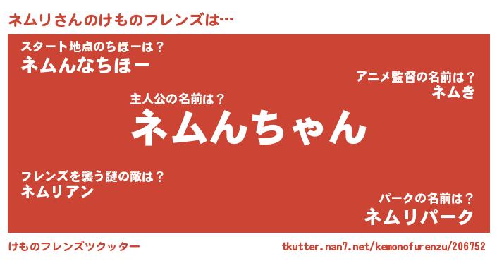 | ヒーロー風カッコイイあだ名 | 『スーパーネムリ』『ウルトラネムリマン』 |