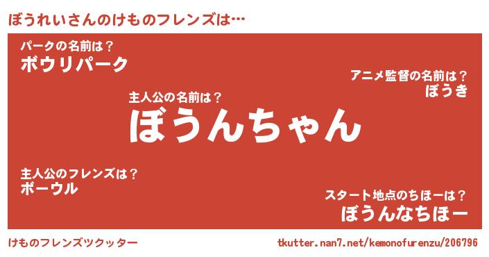 | 2回繰り返すあだ名 | 『ぼうぼう』『もりもり』『ぼぼうう』 |