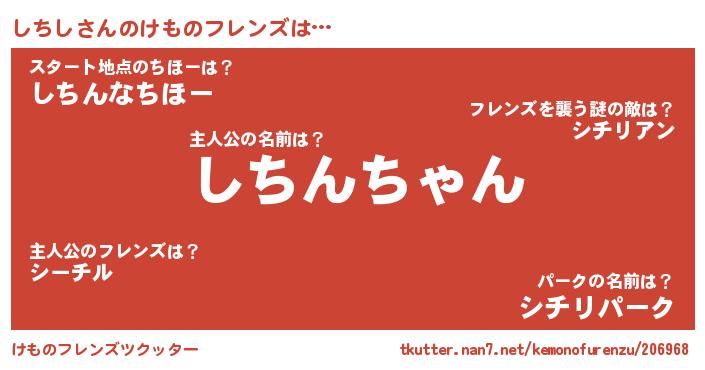 | ヒーロー風カッコイイあだ名 | 『スーパーシチシ』『ウルトラしちしマン』 |
