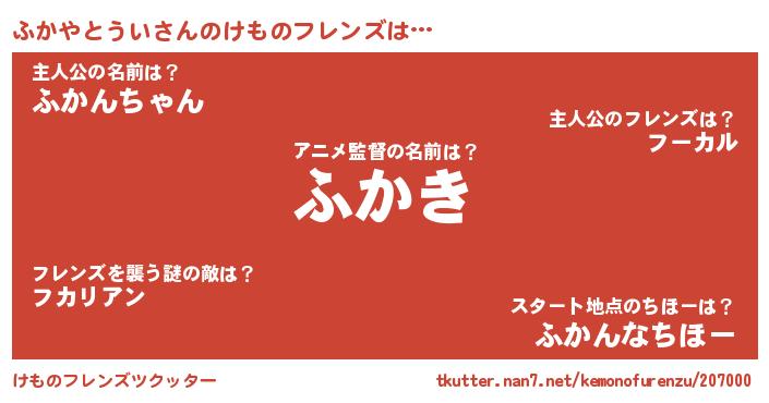 | ヒーロー風カッコイイあだ名 | 『黄金騎士フカ』『スーパーフカヤトウイ』 |