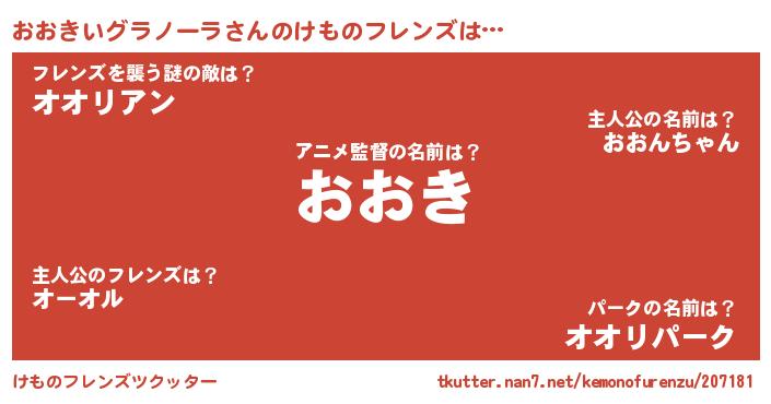 ポケモン風あだ名 | 『ヒオオキイグラノーラ』『オックウザ』 |