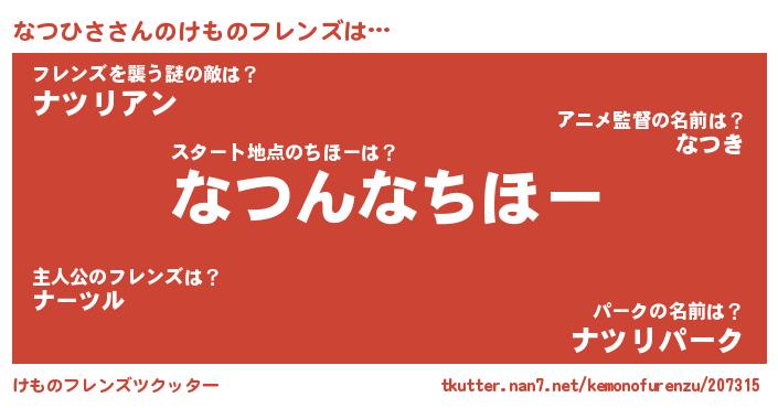 | 意味不明あだ名 | 『ヨモギ科なつひさ属』『自称なつひさ』 |