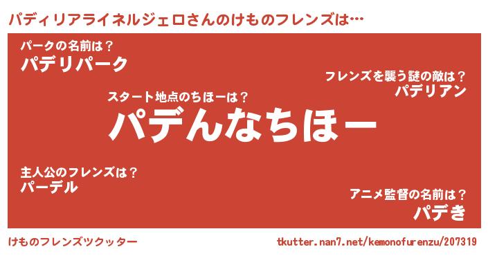 | 欧米人風あだ名 | 『パディリアライネルジェロクリステル』 |