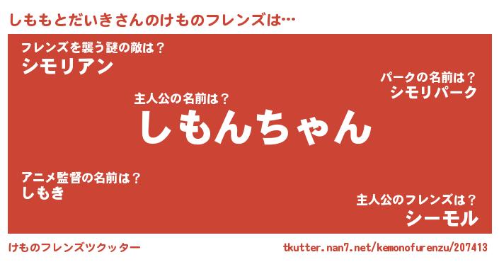 | 2回繰り返すあだ名 | 『しわしわ』『だらだら』『しもしも』 |
