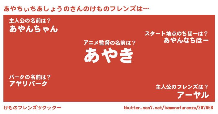 | 意味不明あだ名 | 『とにかく怪しいあやちぃちあしょうの』 |