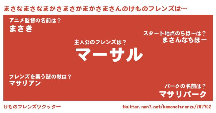 | 男性向けラノベタイトル風あだ名 | 『魔弾の王とまさなまさなまかさまさかまかさま』 |