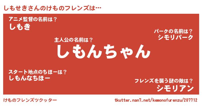 | 意味不明あだ名 | 『住所不定無職しもせき(11歳)』 |