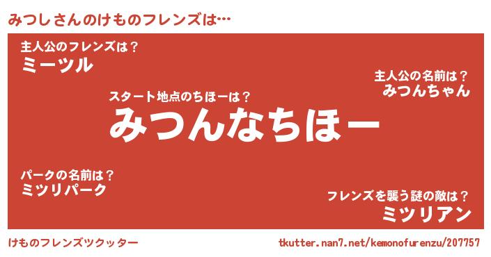 | 女子向けラノベタイトル風あだ名 | 『みつしの玉の輿計画!』『みつし恋絵巻』 |
