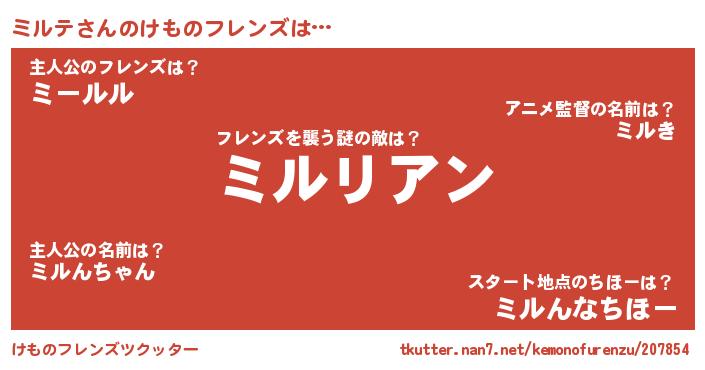 | 料理風あだ名 | 『ミルテのトマト煮』『ミルテごはん』 |