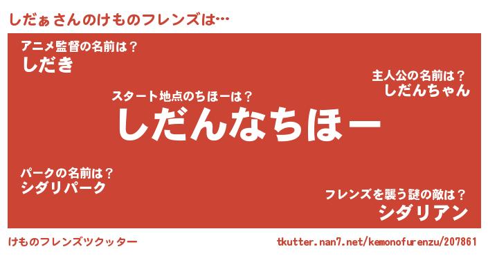 | 意味不明あだ名 | 『しだぁフォーエバー』『ペロリンしだぁ』 |