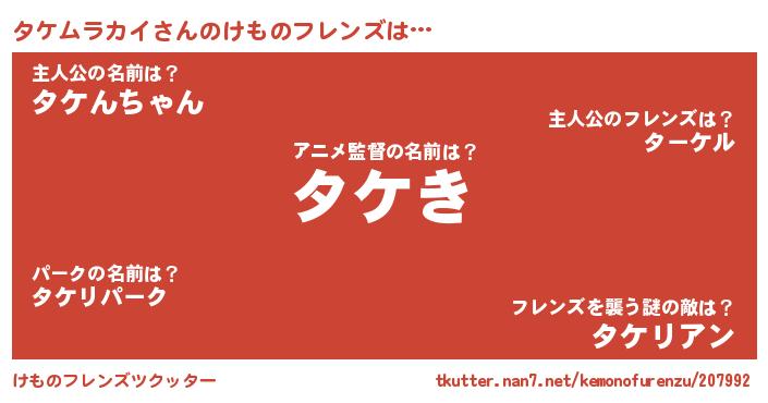 | ポケモン風あだ名 | 『タケキング』『ヒタケムラカイ』 |