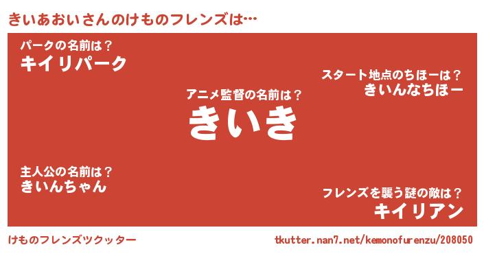 | 意味不明あだ名 | 『ニラ科きいあおい属』『自称きいあおい』 |