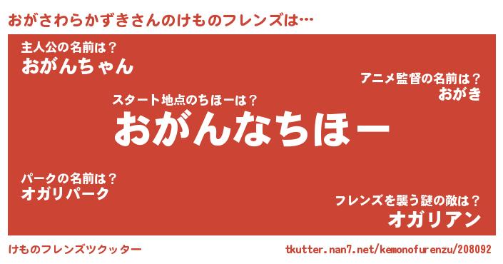 | 2回繰り返すあだ名 | 『おおがが』『わんわん』『おがおが』 |