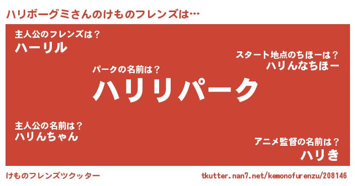 | ヒーロー風カッコイイあだ名 | 『最強戦士ハリボーグミ』『黄金騎士ハリ』 |
