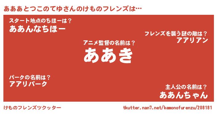 | ポケモン風あだ名 | 『ヒアアアトツコノテユ』『アアアダネ』 |