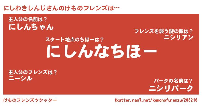 | 2回繰り返すあだ名 | 『ににしし』『にしにし』『もうもう』 |