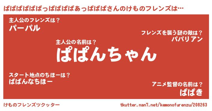 | 胡散臭い通販商品みたいなあだ名 | 『必ず成功する霊験あらたかなお札…その名も「ぱぱぱぱぱぱっぱぱぱぱあっぱぱぱ」』 |